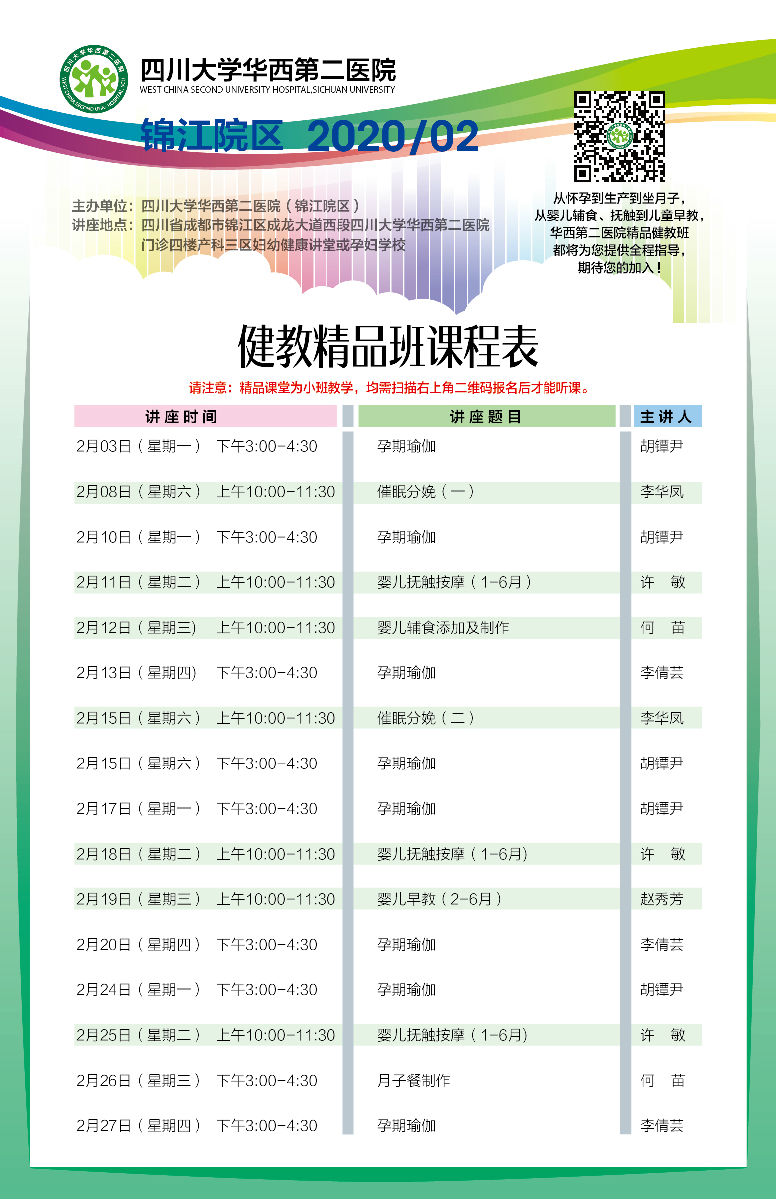 四川大学华西第二医院2020年2月健康教育精品班课程表--锦江院区