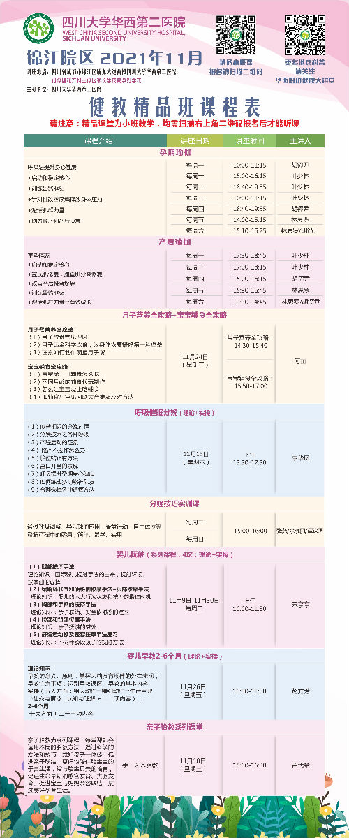 四川大学华西第二医院2021年11月健康教育精品班课程表