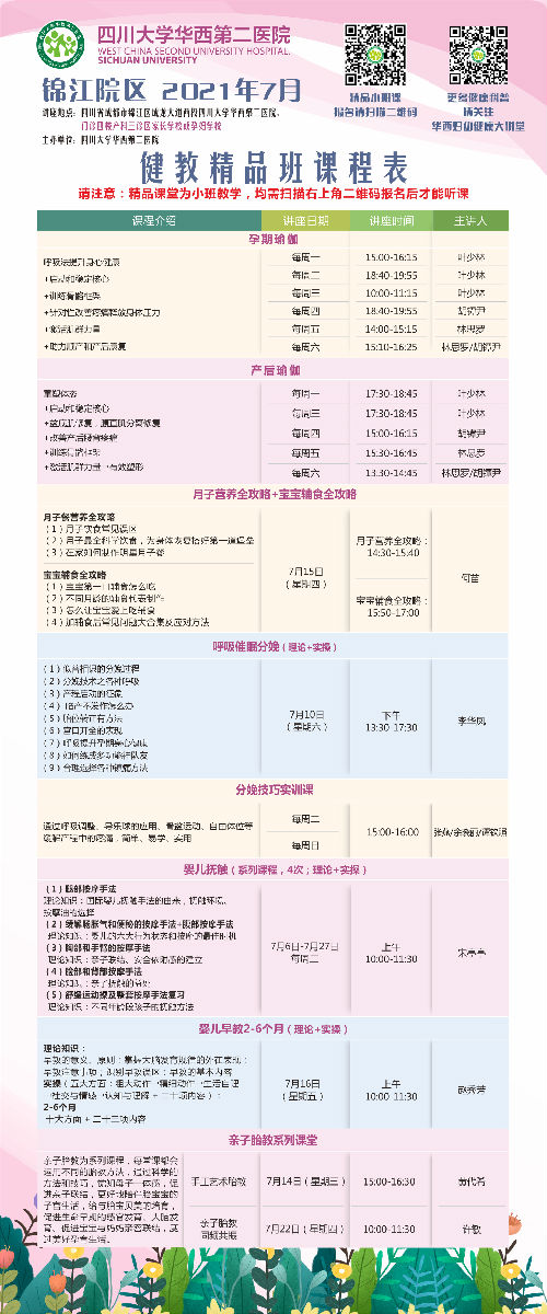 四川大学华西第二医院2021年7月健康教育精品班课程表
