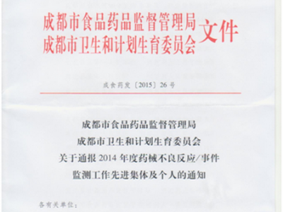 祝贺我院获“2014年度药械不良反应/事件监测工作先进集体”,药学部王丽获“2014年度药械不良反应/事件监测工作先进个人”