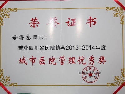 热烈祝贺我院院长母得志教授荣获四川省城市医院管理优秀奖