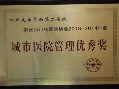热烈祝贺四川大学华西第二医院荣获四川省城市医院管理优秀奖