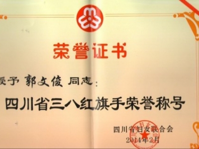 热烈祝贺周晨燕同志荣获“四川省三八红旗手标兵” 郭文俊同志荣获“四川省三八红旗手”荣誉称号