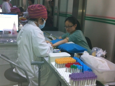 检验科感人瞬间——记检验科采血人员陈春凤拄拐杖坚持工作