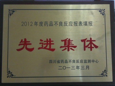 我院获四川省药品不良反应监测中心“2012年度药品不良反应报表填报先进集体”表彰