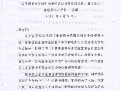 在全省医药卫生系统为民服务创先争优视频会议的讲话