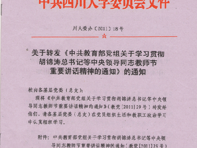 关于转发《中共教育部党组关于学习贯彻胡锦涛总书记等中央领导同志教师节重要讲话精神的通知》的通知
