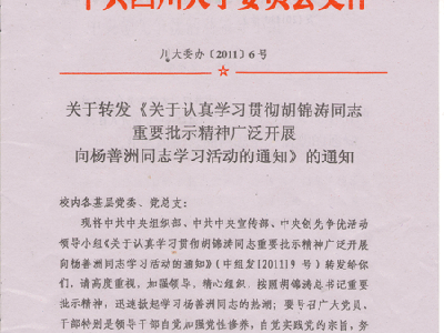 关于转发《关于认真学习贯彻胡锦涛同志重要批示精神广泛开展向杨善洲同志学习活动的通知》的通知