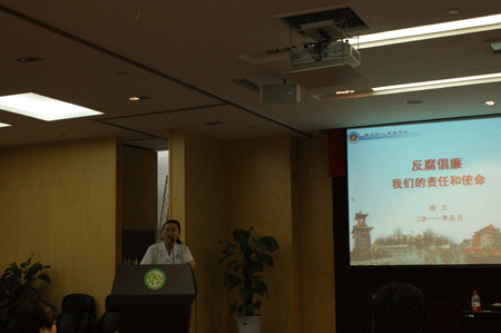 专题报告会上,徐兰书记对我院在四川大学党风廉政建设宣传月活动中开展的活动给予肯定,对医院的特色做法给予赞赏。徐书记从当前高校党风廉政建设和反腐斗争的形势;腐败案件发生的多发态势;反腐倡廉我们的责任和使命;医院加强反腐倡廉的建议等四个方面,以案说纪,以纪论理,生动形象、深入浅出地为医院各级领导干部上了一堂精彩的反腐倡廉警示教育课。