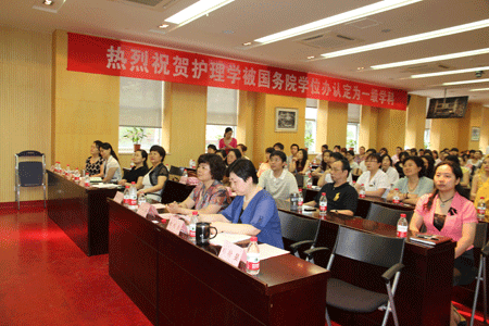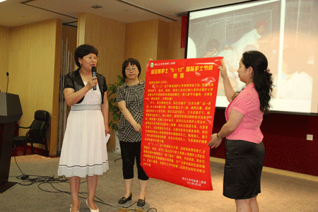 为迎接第100个国际护士节的到来,庆祝护理学被国务院学位办认定为一级学科,深入推进优质护理服务的开展,2011年5月11日我院护理部在医院各部门的大力支持下举办了庆祝活动。母得志院长、王素霞书记、刘翰旻院长、邢一玲院长、郄明蓉院长、王红静副书记、郭文俊主任等领导参加了本次活动,同时,还邀请到了我院护理前辈张仕娴老师、四川大学华西护理学院副院长陈红老师及四川大学华西口腔医院护理部主任赵佛容老师三位嘉宾。