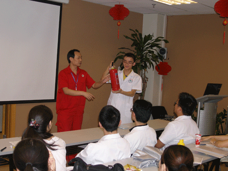 在此次消防安全培训演练中,科室特地邀请医院消防监控部武开明同志结合消防安全制度以及火灾案例,对如何树立公共消防意识、预防、杜绝可能引起消防事故的内外隐患、个人面对突发火灾事故应如何进行报警、救灾及逃生等方面进行全面的培训。对科室消防设施进行了详细的介绍。为达到实战演练效果,还组织检验科全体员工重点培训了灭火器、消火栓的使用,以及如何通过安全通道逃生的现场演练。让全体员工对消防知识有了更直观的了解。