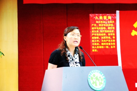 然后,党委王素霞书记带领新党员进行了庄严宣誓,面对鲜艳的党旗,全体新党员右手握拳,立下铮铮誓言:“我志愿加入中国共产党,拥护党的纲领……”,以铿锵有力的声音表达着入党的喜悦之情和对党的忠诚之心。