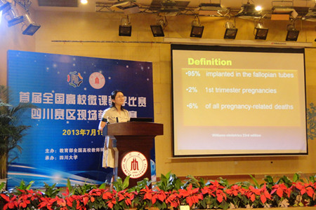 7月15日上午,首届全国高校微课教学比赛四川赛区现场教学决赛在四川大学望江校区文化活动中心顺利举行,入围“首届全国高校微课教学比赛四川赛区现场教学决赛”理工类的20名教师参加了决赛。比赛设置一等奖3名、二等奖6名、优秀奖11名。获得一、二等奖的9名选手将代表四川赛区参加全国的总决赛。我院入围参赛的8名选手喜获佳绩:刘瀚旻获一等奖;何翔、胡颖、阮洁和李晋辉获二等奖;陈琼、任建华和傅璟荣获优胜奖。其中刘瀚旻、何翔、胡颖、阮洁、李晋辉等5人进入全国总决赛。