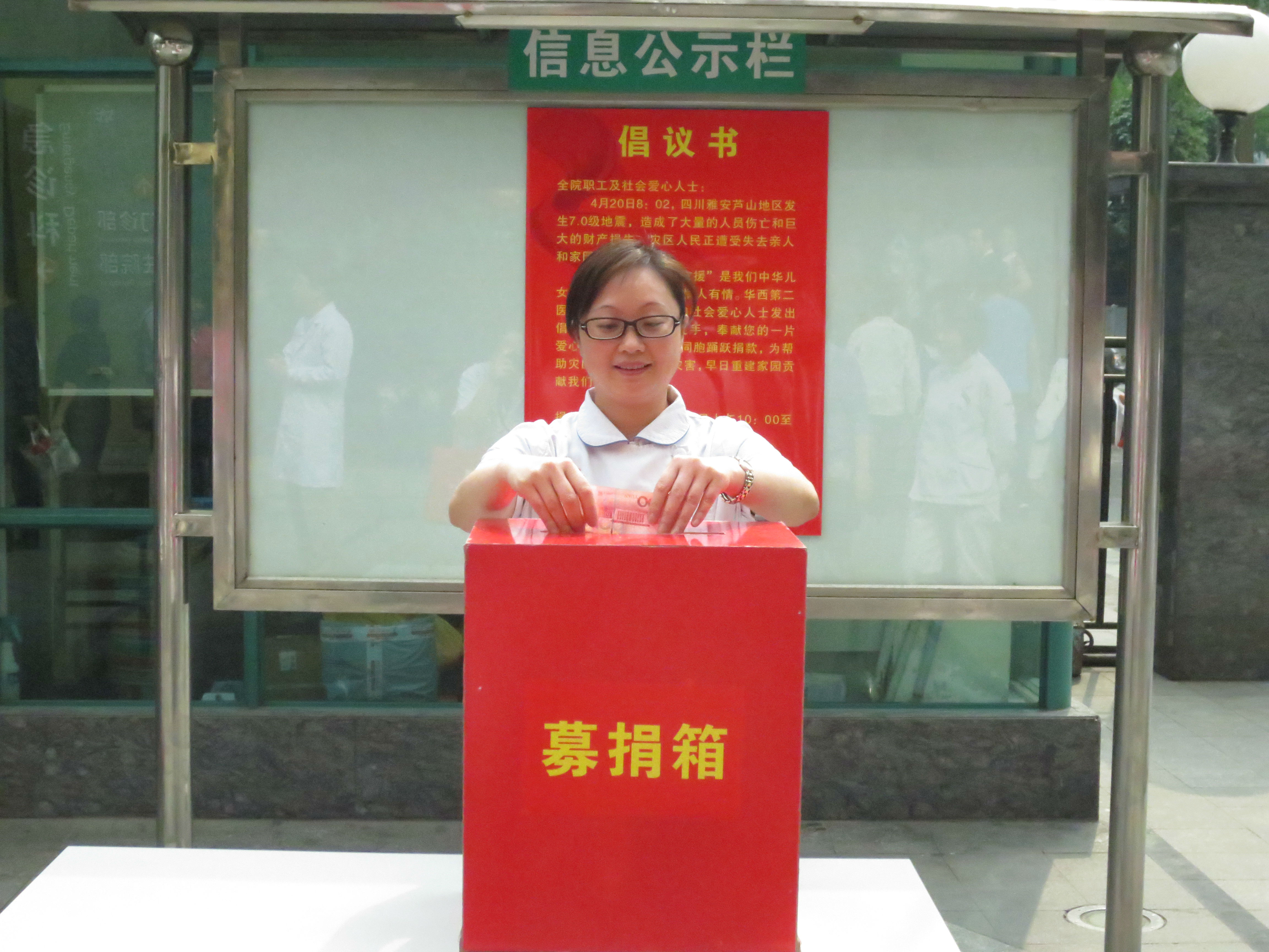 此次雅安地震已造成大量人员伤亡和财产损失。“一方有难,八方支援”,我院党政向全院职工和社会爱心人士发出倡议,为雅安地震灾区同胞捐款,全院护士不论上班、还是休息都纷纷赶到活动现场奉献爱心、贡献力量。