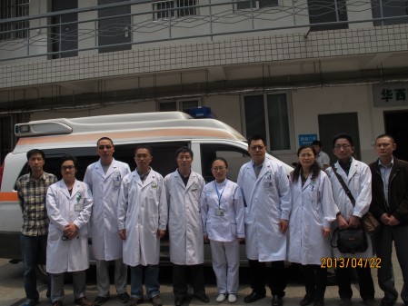 华西第二医院派遣第二批医疗救援队奔赴灾区 2013-04-22 14:34:42超级管理员 4月22日,华西二院接到灾区前线医疗救援队的报告,目前灾区儿童病人增加,缺乏儿科医生,医院决定派出第二批由儿科、产科医生及助产士组成的医疗救援队,第二批医疗救援领队陈大鹏,成员包括:边策、甘靖、万里。并于13:07分出发前往灾区。医院领导为第二批医疗队送行,要求大家注意安全,积极救助灾区病员(供稿、摄影王海英)。