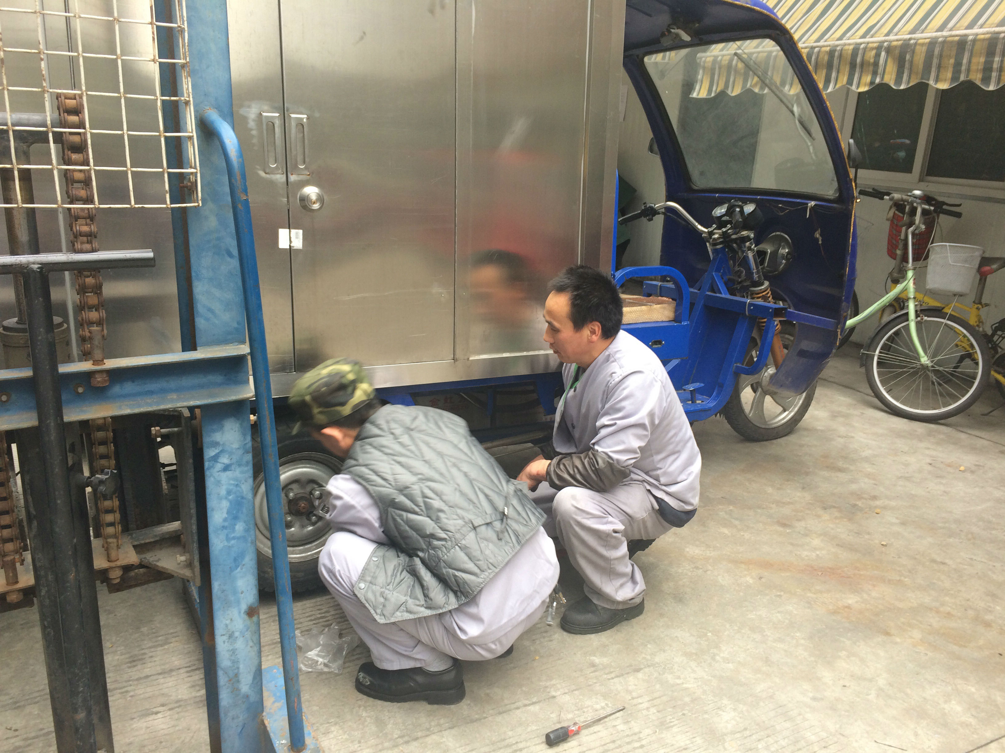 医院布类运送车辆因高频率、超负荷的使用,零部件经常易出现故障。每当出现一些小的故障时,驾驶员师傅都是自己拿起工具充当维修工,虽然要往车底爬进爬出,又脏又累,但他们想的是能使问题尽快得到解决,以至不影响运送布类的工作。