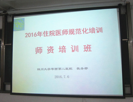 我院2016年住院医师规范化培训师资培训班于2016年7月6日下午,在四川大学华西临床医院新八教201教室举行。会议由医院教务部组织,教务部黄莉君主任主持,院长助理尹如铁教授出席会议并代表医院领导讲话。儿科、妇产科、检验科、放射科、超声科、病理科、急诊科、麻醉科等八个专业基地的100余名住院医师临床带教老师参加培训。