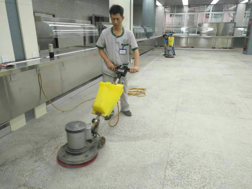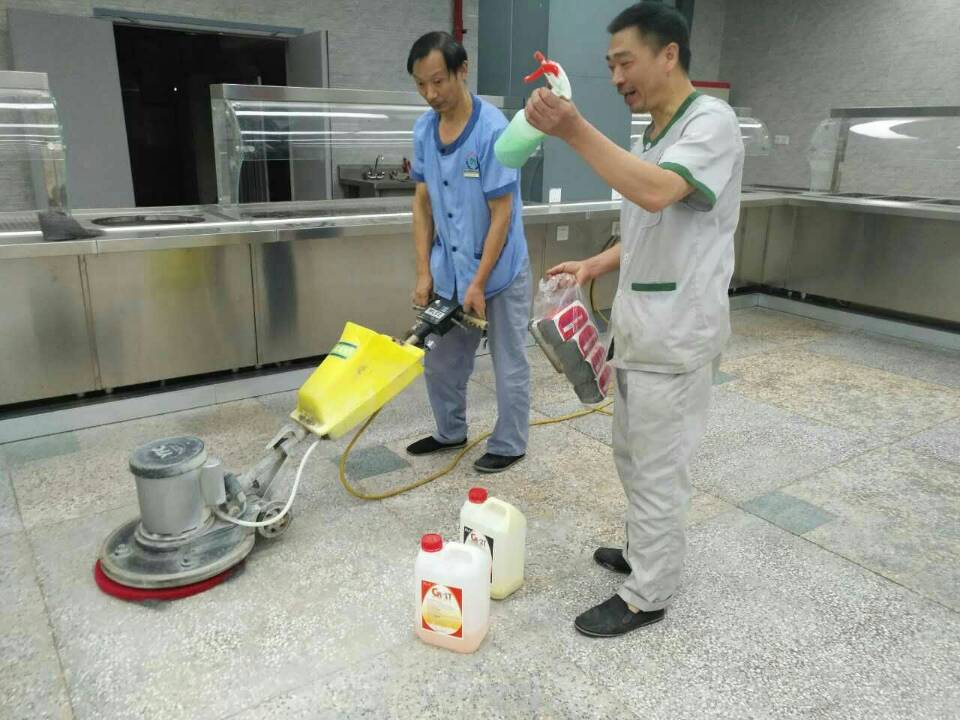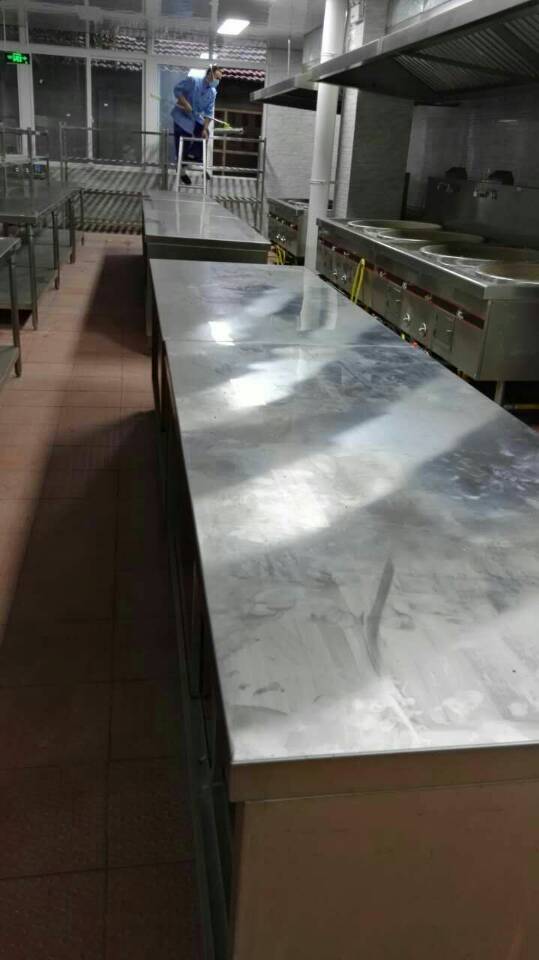 为了保障医院员工及患者的进餐环境安全卫生,医疗运行保障办公室根据部门安排第一次彻底对地面、墙面、屋顶、橱柜、灶台等开光的清洁卫生任务。9月14日,我们抽调4名专业能手,每天从上午8点至晚上10点对新食堂的地面进行除泥垢、抛光清洁;对墙面、屋顶表面进行全能去污;对不锈钢橱柜、灶台进行表面去污上油保养等工作。员工们每天虽然在满屋粉尘的环境中连续工作10多个小时,但是员工们都愉快紧张地进行工作,都是为了漂亮的员工食堂早日与大家享用。(供稿 邓云清 摄影 曾玉书)