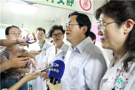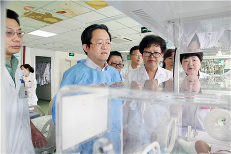6月27是“6.24”茂县地质灾害中幸存的母子在华西第二医院住院的第三天。上午十点,国家卫生计生委应急办主任许树强从灾区前线指挥部赶往成都,在华西医院和华西第二医院先后看望了“6.24”茂县地质灾害中幸存的一家三口,并询问了目前的治疗情况。