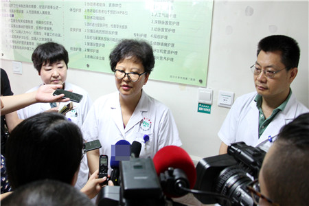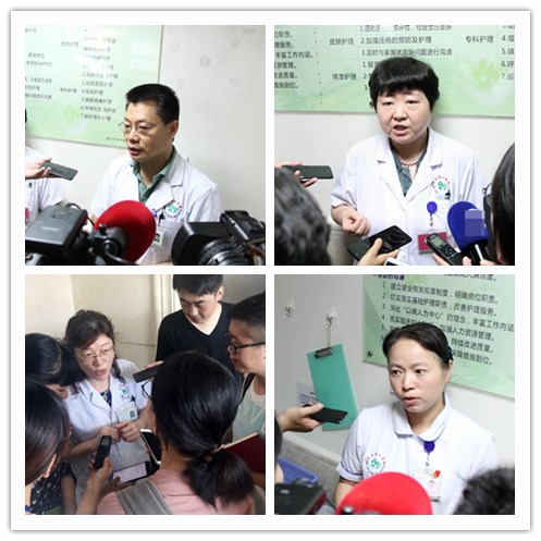 “6.24”茂县地质灾害中幸存的一家三口受到了各界媒体和社会人士的关注。27日上午,我院常务副院长母得志、副院长郄明蓉、产科主任刘兴会、产科副主任胡雅毅、心理咨询师陈静、PICU护士长徐敏分别在PICU和产科病房门口接受了采访。新生儿科母得志教授在采访中讲述了患儿在我院PICU的治疗情况和后续安排。郄明蓉副院长谈到我院在应急救治小组成立以来医院各个科部门的协调和配合。产科主任刘兴会向记者介绍了产妇身体状况和产科在治疗、心理咨询和生活护理等方面所做的工作。PICU护士长徐敏在采访中讲到,患儿目前是24小时看护,喝奶状况不错。