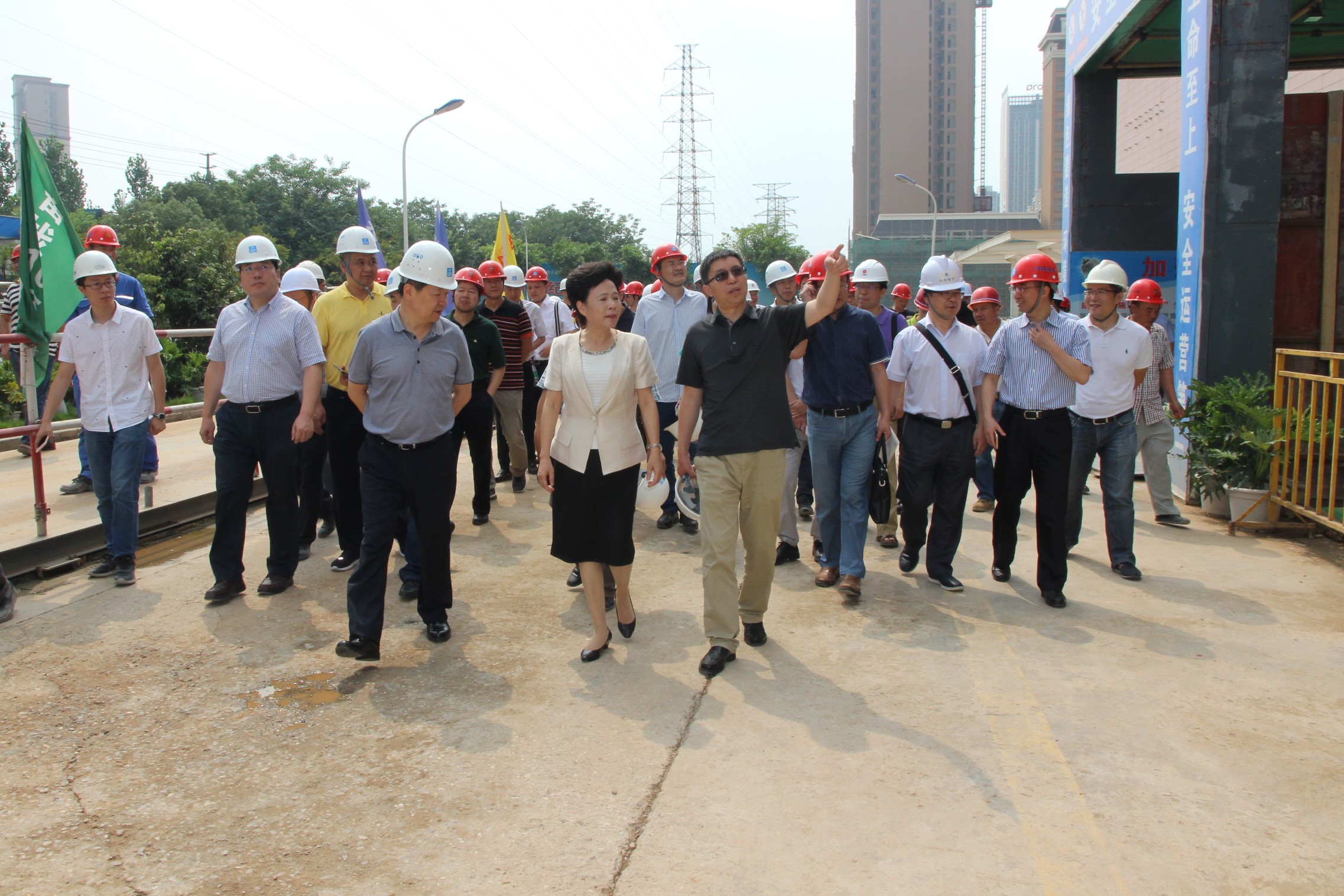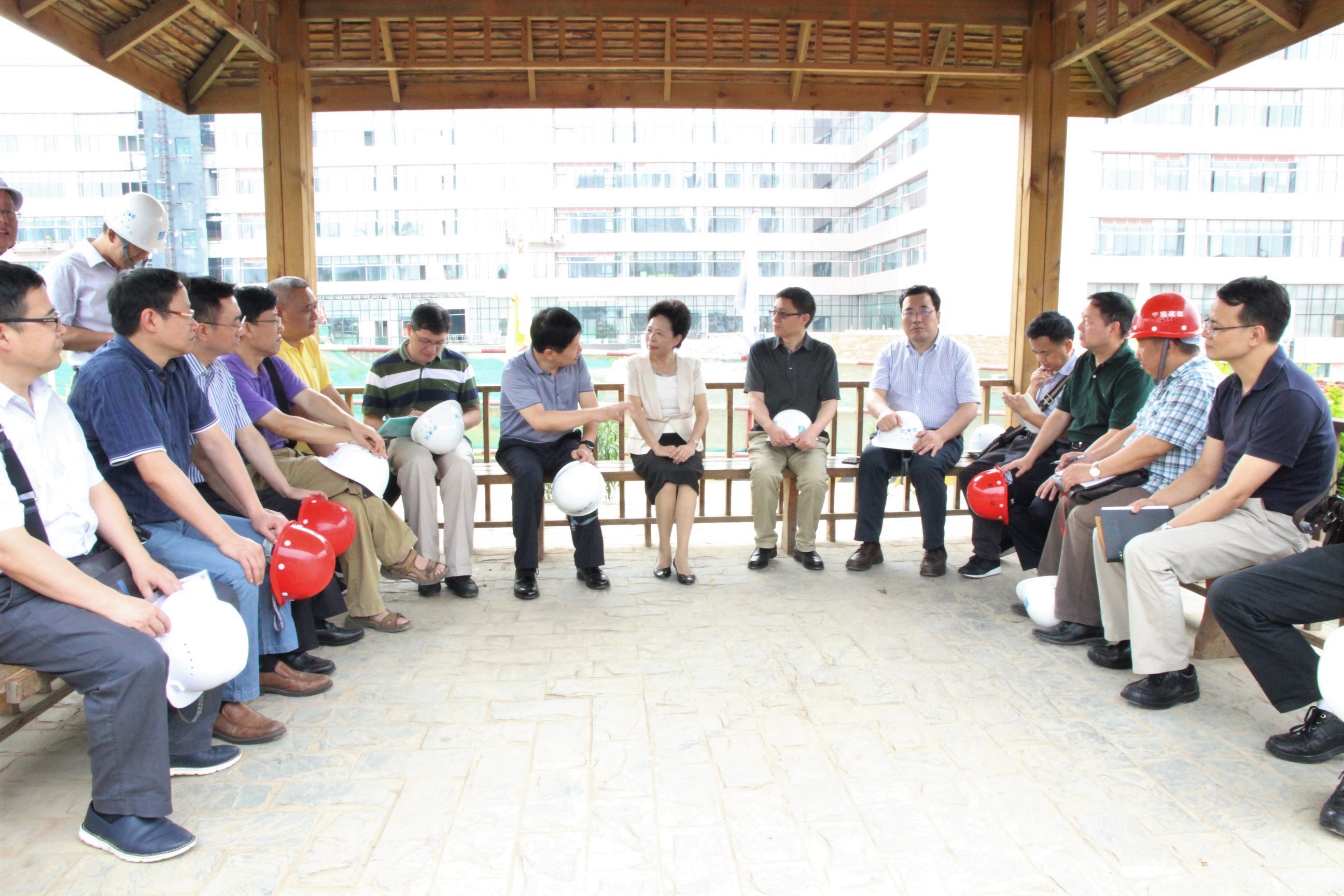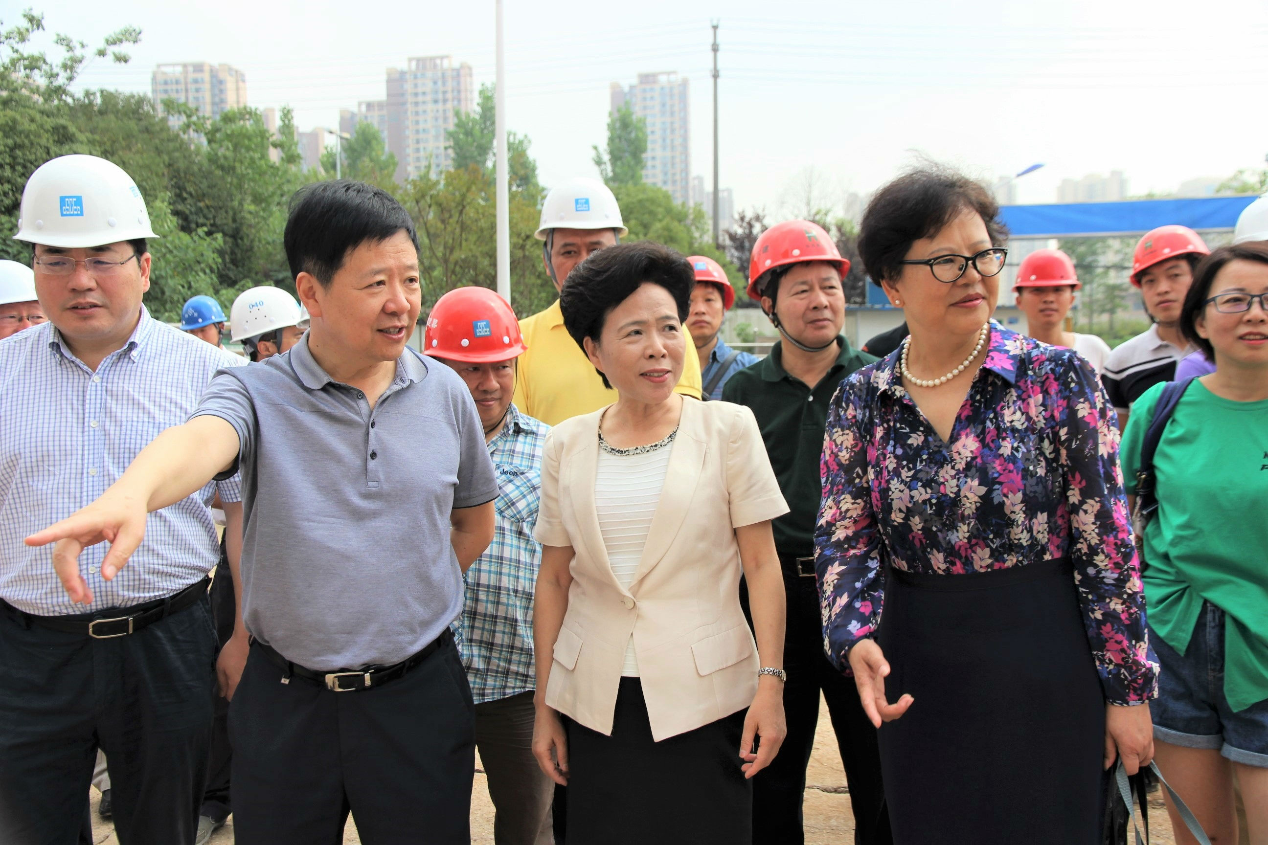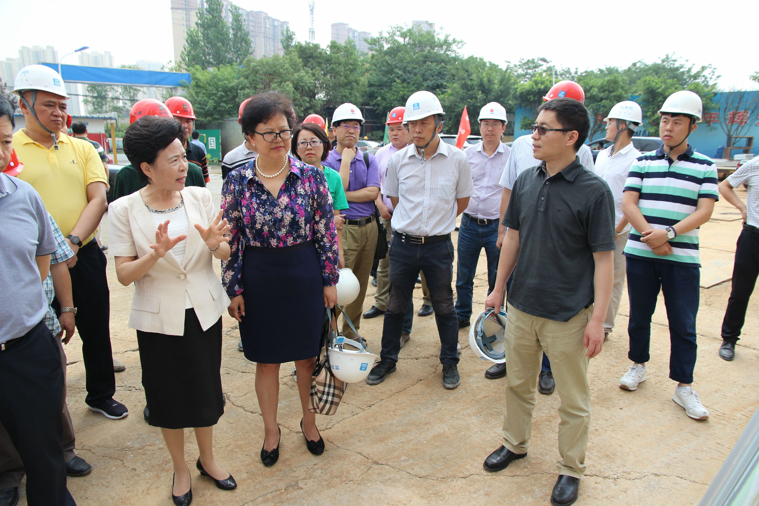 王晓东主席简要的向黄彦蓉副主任及各位领导介绍了我院锦江院区项目概要以及目前的建设情况。黄主任对现场的建设情况表示充分肯定,针对现场的具体情况,提出了“四个满意”:项目符合《中国妇女发展纲要(2011-2020年)》和《中国儿童发展纲要(2011-2020年)》,建设质量满意,建设进度满意,推进效果满意。紧接着对工程提出以下要求:大门一定要到做好,周边交通干道要尽快贯通,高压线绿化要做好,加快进度,确保如期就诊,确保天府杯,力争鲁班奖。