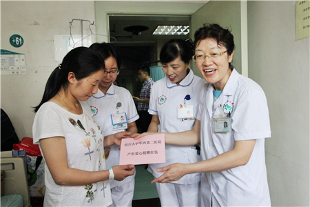 2017年7月3日,是产妇肖燕春、婴儿乔道淳在我院入院治疗的第九天。在住院期间,医院党政领导及儿科、妇产科对母子二人十分关心,除了完成医疗诊治外,对母子两的生活给予特别照顾,医院党委还在医院庆七一表彰大会上发出捐款倡议,党员及领导干部近100多人纷纷解囊,现场共捐款11905元。随后,王素霞书记亲自将寄托着全体党员和教职员工爱心的捐款送到淳淳母亲手中,并表示医院将会长期关心淳淳的健康成长,希望他们增强信心、重建美好家园。