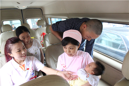 待小淳淳的父亲到达我院后,一家三口团聚后,医护人员为肖艳春收拾了行李,并跟茂县人民医院的陪护人员做了交接。省卫计委领导、郄明蓉副院长、王海英主任一直将患者一家三口及肖燕春母亲护送上车。