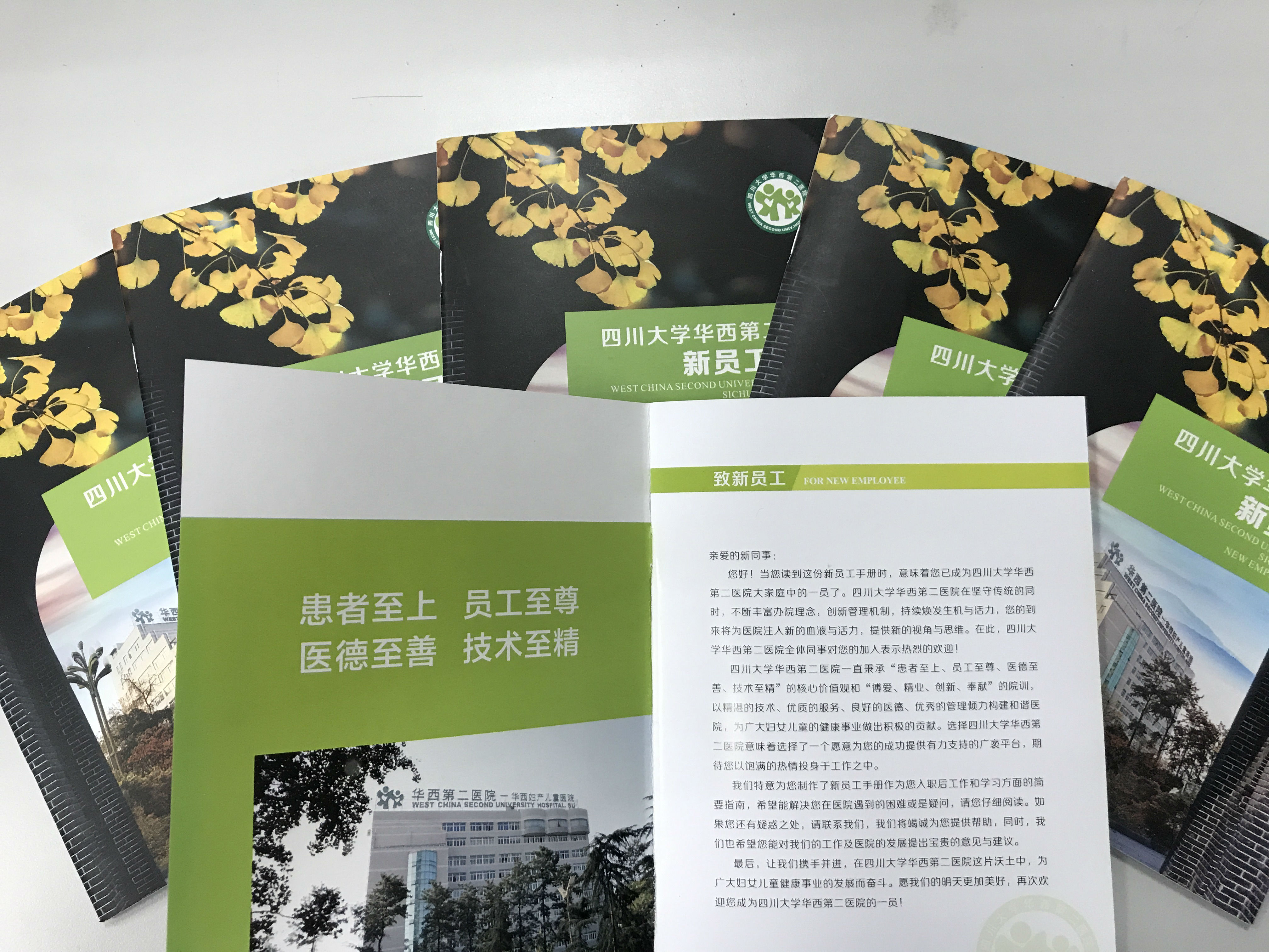 《四川大学华西第二医院新员工手册》印制完成 2017-06-14 14:35:25人力资源部 我部近期印制完成《四川大学华西第二医院新员工手册》,这是我院首次针对新员工编制的入职手册。该手册向新员工介绍了我院基本情况、组织架构及新员工入职、福利、职业发展等方面内容,有助于新员工尽快融入我院氛围,熟悉我院办事流程,顺利在我院启动新一阶段的工作。(人力资源部袁晟)