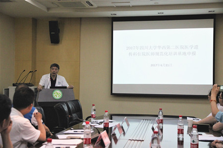 四川省卫生和计划生育委员会毕业后教育委员会办公室(简称“省毕教办”)组织的“2017年四川省住院医师和医疗机构药师规范化培训基地实地评审”组,于2017年6月21日上午对我院的医学遗传科(产前诊断中心/优生优育科)住院医师及医疗机构药师规范化培训基地进行了实地评审。