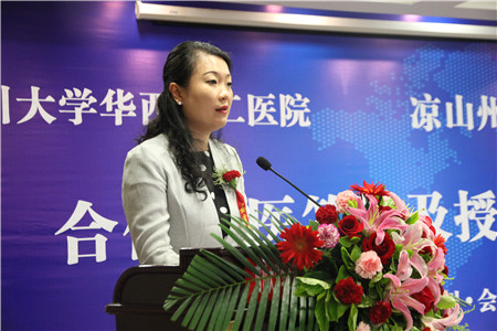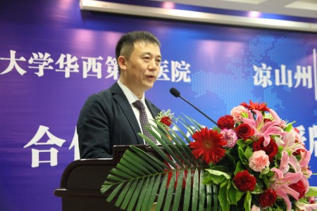 四川大学副校长张林、我院院长刘瀚旻、四川大学华西医院常务副院长黄勇,凉山州委常委、宣传部长、总工会主席曾令举,会理县县委书记李怀良,县委副书记、会理县县长陈方勇,会理县县人大常委会副主任黄明金,会理县副县长张黎,会理县县政协副主席张波出席签约暨授牌仪式。