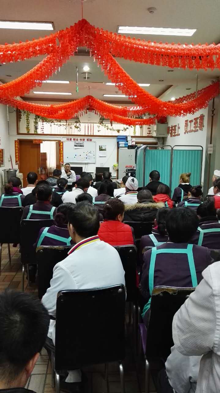 1月12日下午医院食堂组织全体员工,逐条传达讨论医院医护人员对营养食堂提出的意见及建议,并明确提出如果食堂工作人员再发生相似问题,定将严肃处罚;同时号召大家再次学习《中华人民共和国食品安全法》。并提出工作计划:定期培训厨师,改进菜谱配餐;开展厨艺比拼;改善订餐及送餐服务,保障将热气腾腾的配餐及时送达临床一线等。请医院领导及全院教职工相信我们,一定勤奋努力,系统整改,为全院教职工及患者提供可口、卫生、安全的配餐。(供稿:邓云清,摄影:邓云清、江佳蔚)