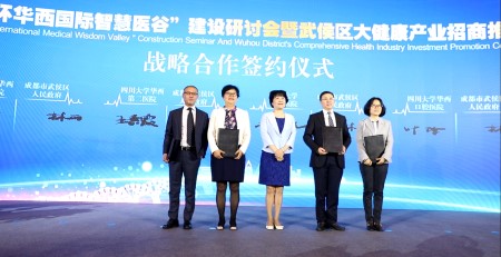 2018年3月28日,2018年“环华西国际智慧医谷”建设研讨会暨武侯区大健康产业招商推介会在四川大学世外桃源酒店举行。本次会议由四川大学、中共成都市武侯区委、成都市武侯区人民政府共同主办。成都市副市长刘筱柳、四川大学党委副书记敬静、我院党委书记王素霞、华西医院院长李为民、华西口腔医院院长叶玲、华西第四医院院长李晓松、我院党委副书记/纪委书记王红静以及国家卫计委、武侯区等领导出席会议。