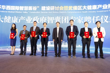 会上,李为民院长代表四川大学华西医院介绍共建“环华西国际智慧医谷”战略构想。武侯区人民政府同四川大学四家附属医院以及大健康领域重点企业完成了战略合作框架协议、合作项目签约。我院党委王素霞书记代表我院签订战略合作框架协议。此次活动不仅聚集了相关领导、学者、相关企业负责人,纵论大健康产业发展,还公布了武侯区第一批大健康产业政府智囊团名单,武侯区委书记巫敏为们颁发了聘任证书,我院胡雅毅教授获得此次受聘。