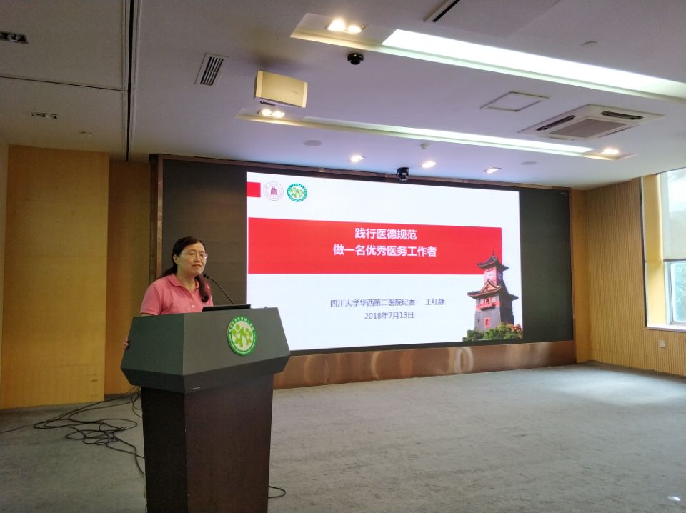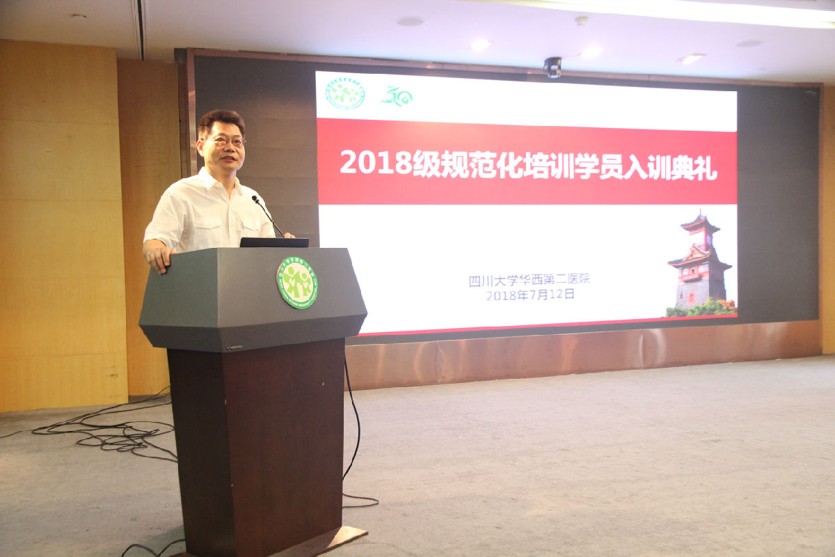2018年7月12日上午,由教务部主办的2018级规范化培训入训典礼在我院西部妇幼医学研究院二楼1会议室举行。入训典礼由常务副院长母得志主持,刘瀚旻院长、党委书记王素霞、总会计师张进、院办主任王学东、党办主任陈大鹏等出席,各专业基地主任及分管主任、2018级各类规范化培训学员近300人参加。首先,刘瀚旻院长代表医院欢迎了各位规范化培训新学员的加入,他希望学员珍惜规范化培训的机会,能够在华西第二医院留下一段美好的回忆。检验科江咏梅主任代表专业基地给新学员提出了要求,也送出了祝福。曾玺作为学生代表畅谈了自己作为医学生的感悟。党办陈大鹏主任带领所有学员进行了医学生宣誓。最后,常务副院长母得志对入训典礼进行了总结,他期望新学员能够尽快融入大家庭,几年后以优异的成绩顺利结业。