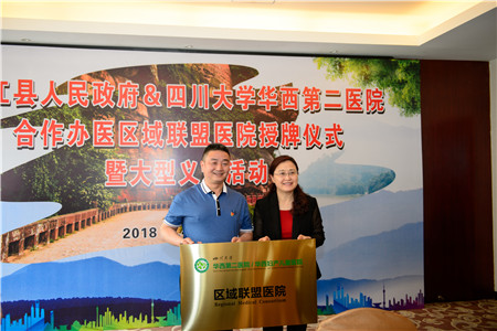 上午9点30分,举行四川大学华西第二医院与夹江县人民政府合作办医区域联盟医院授牌仪式,夹江县人民政府副县长刘萍主持活动,夹江县县委常委/宣传部部长蔡东、夹江县县卫计局副局长谭建成、我院党委副书记/纪委书记王红静出席活动并先后致辞。期间,我院党委副书记/纪委书记王红静代表我院向夹江县人民医院、夹江县妇幼保健服务中心授牌。
