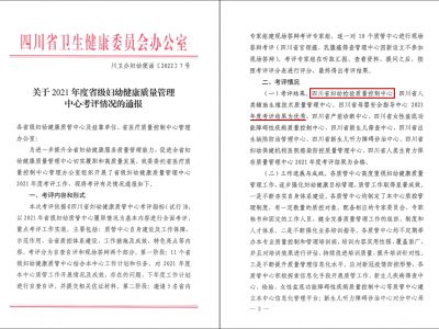 喜讯!四川省妇幼检验质量控制中心在年度省级妇幼健康质管中心考评中获得优秀