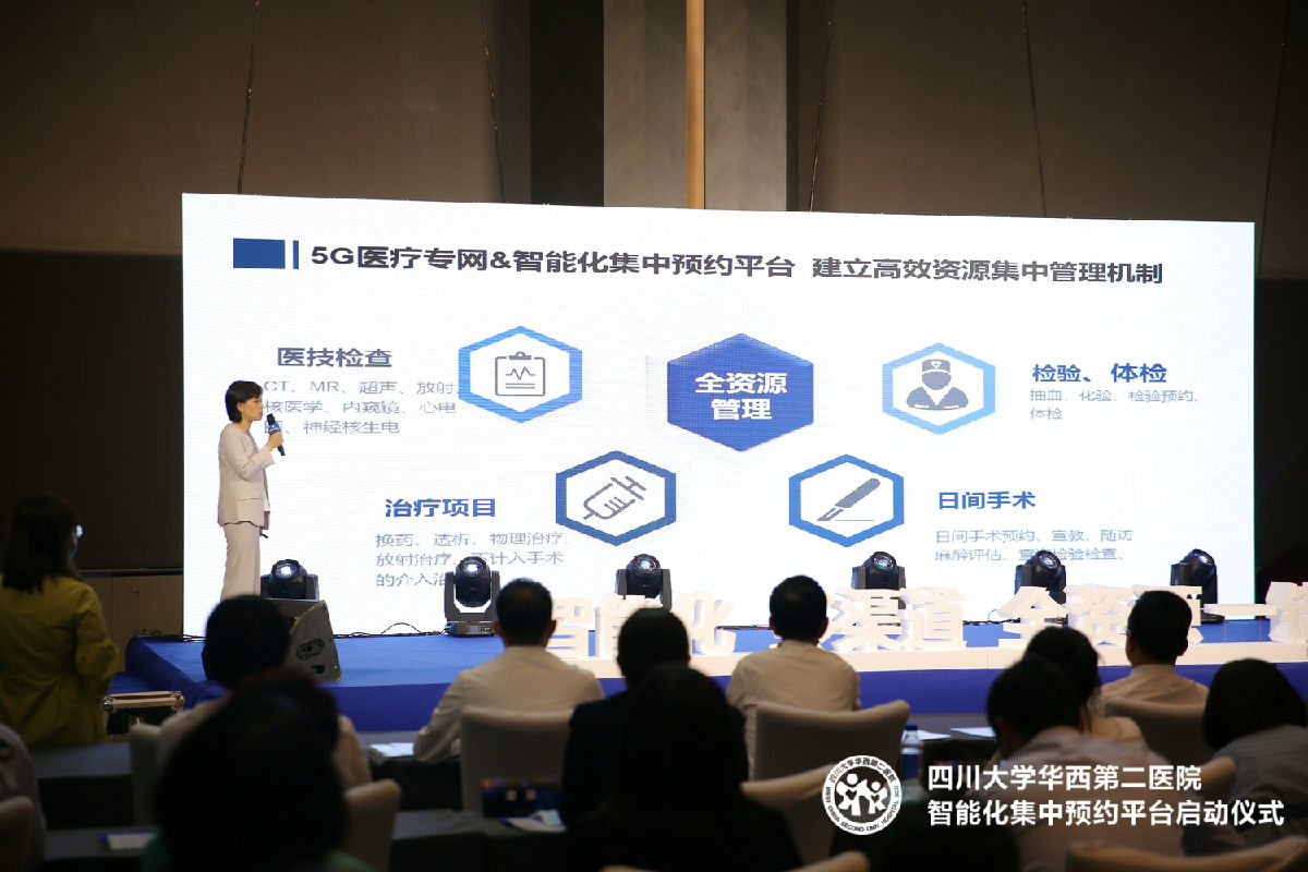 我院刘瀚旻院长表示,为贯彻落实国务院办公厅深化医药卫生体制改革及国家卫健委《进一步改善医疗服务行动计划》的要求,提升患者就医便捷性和获得感,四川大学华西第二医院率先在西南地区打造“智能化、多渠道、一键式” 全资源集中预约平台,通过5G与AI智能预约引擎的完美融合,有效解决传统检查预约“排队次数多、等候时间长”的问题,实行检查检验集中预约。