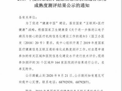 我院顺利通过2019年国家医疗健康信息互联互通标准化成熟度五级乙等测评