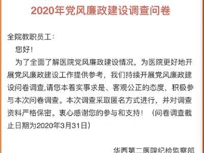 开展问卷调查 “把脉”医院党风廉政建设工作情况