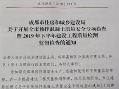 成都市住房和城乡建设局对我院锦江院区二期项目开展全市预拌混凝土专项检查