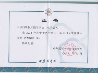 祝贺《中华妇幼临床医学杂志(电子版)》荣获“优秀期刊奖”与“优秀编校质量奖”