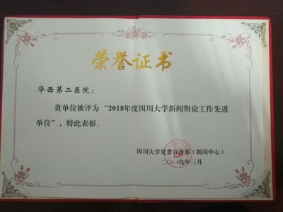 我院荣获“2018年度四川大学新闻舆论工作先进单位”表彰