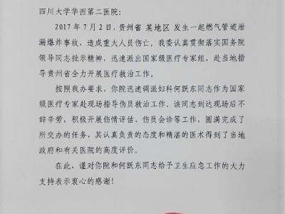 我院妇科何跃东教授参与事故救治获国家卫计委表扬