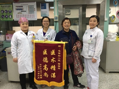 拾金不昧,医德高尚——检验科收到患者锦旗一面