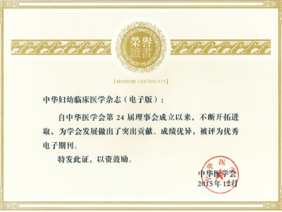 祝贺《中华妇幼临床医学杂志(电子版)》被评为优秀期刊