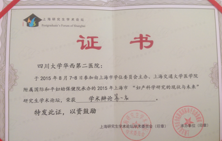 我院妇产科代表队参加2015年上海市“妇产科学研究的现状 与未来”研究生学术论坛拔得头筹