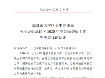 我院被评为武侯区2020年度妇幼健康工作先进集体