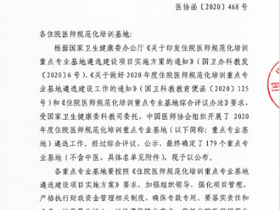祝贺我院妇产科、儿科住院医师规范化培训专业基地被评为国家“重点专业基地”