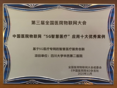 我院荣获“2020年中国医院物联网应用‘5G智慧医疗’十大案例”
