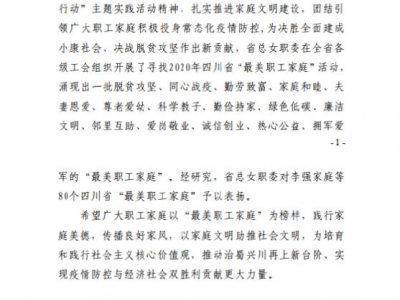喜报!张春梅家庭荣获2020年四川省“最美职工家庭”称号